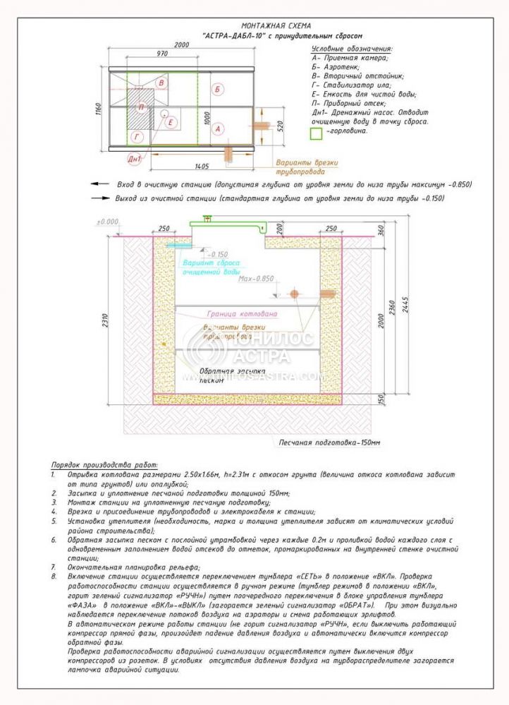 Объем переработки: 2 м3/сут