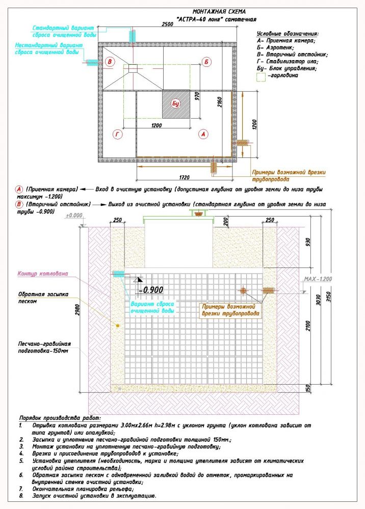 Функционирование септика Юнилос Астра 40 Long происходит в 7 этапов. За очищение воды отвечает несколько камер, которые обрабатывают жидкость и удаляют грязь на 98%. Рассмотрим все этапы: