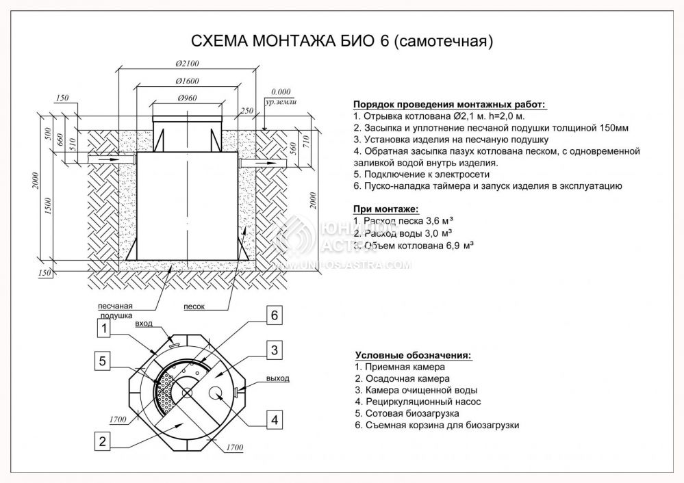 Юнилос Астра 6 — очень популярная модель биологической станции очистки для частных домовладений. Она компактна, проста в монтаже, эффективно работает и долго служит (в конструкции отсутствуют механические узлы, поэтому «ломаться нечему»).